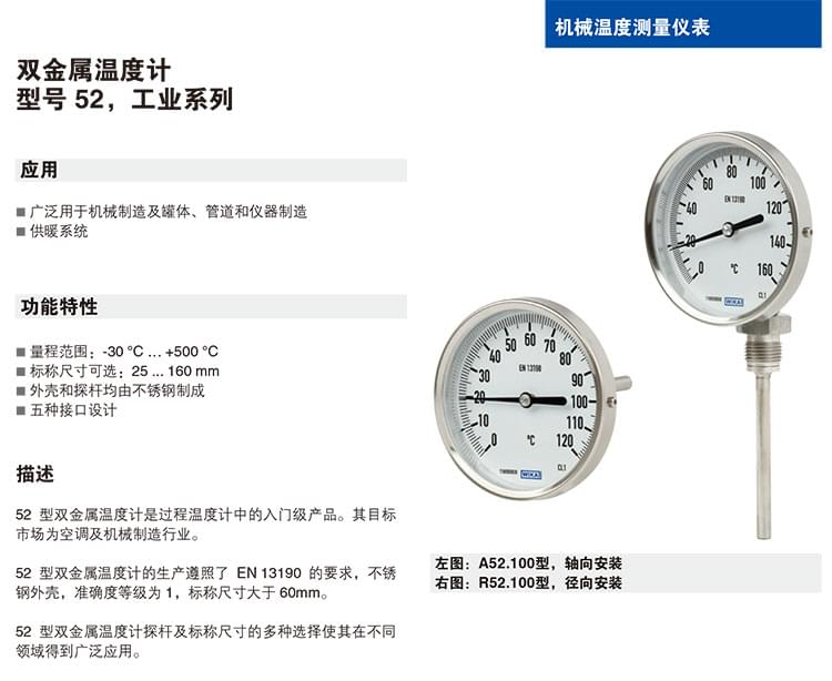 EN13190 全系列溫度計(jì)  A52 R52 徑向軸向雙金屬溫度計(jì)