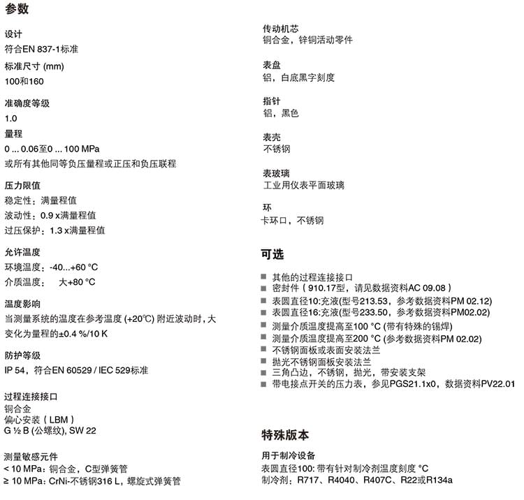 2. 膜片壓力表,化學(xué)工業(yè)型,表頭不充液/充液,高過壓保護(hù)壓力表,針對(duì)UHP應(yīng)用:422.12 432.50 432.56 423.36 423.25