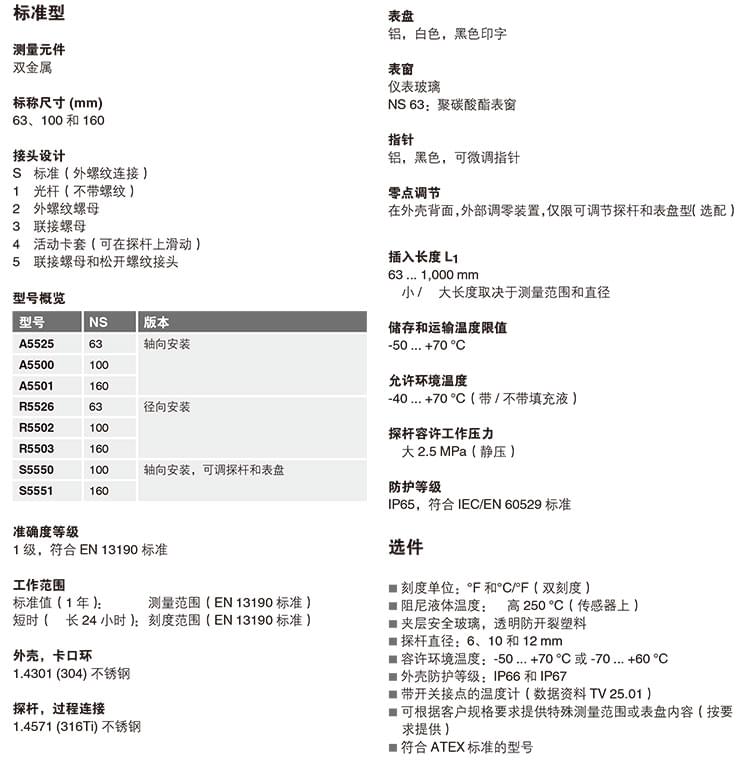 • R55/A55/S55 雙金屬溫度計 耐腐蝕不銹鋼溫度計