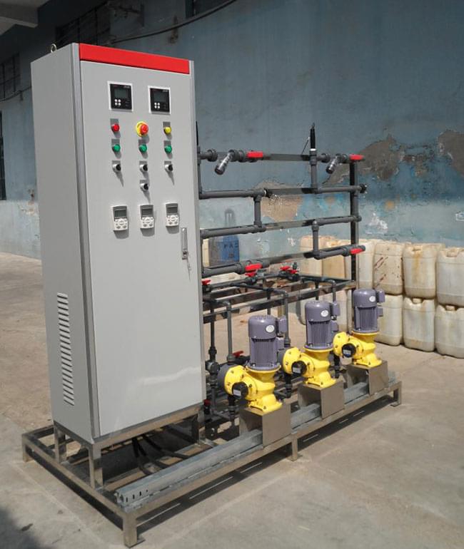 循環(huán)冷卻水,冷凍水根據(jù)不同循環(huán)比例、控制方式可實(shí)現(xiàn)定時定量加藥、遠(yuǎn)程數(shù)據(jù)控制加藥,三種藥劑分三通道加藥,每個通道根據(jù)不同的時段,不同的藥劑量設(shè)置遠(yuǎn)程控制加藥。