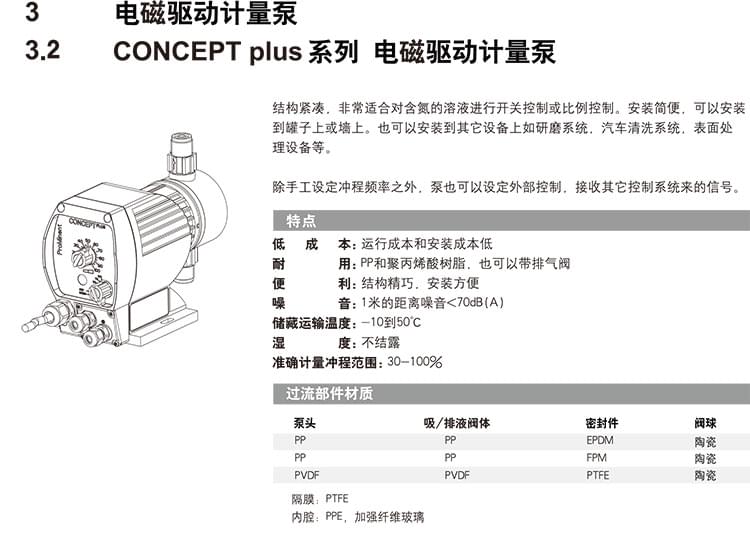 【普羅名特計量泵】CONCEPT PLUS電磁隔膜計量泵特點: