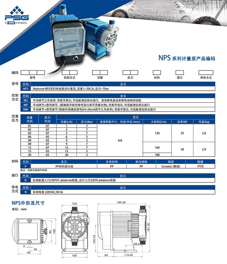 型號:[Neptune計量泵]海王星電磁隔膜加藥泵NPS系列