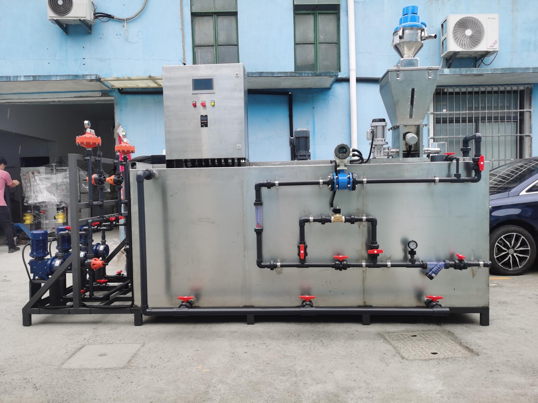 集自動配料、溶解、投加于一體,全自動運行,干投機的高精度輸送及加熱裝置的巧妙設計,可減少結(jié)塊(粒)現(xiàn)象,干粉、進水均可調(diào)整,可制備任意濃度的藥液,設備全自動運行。