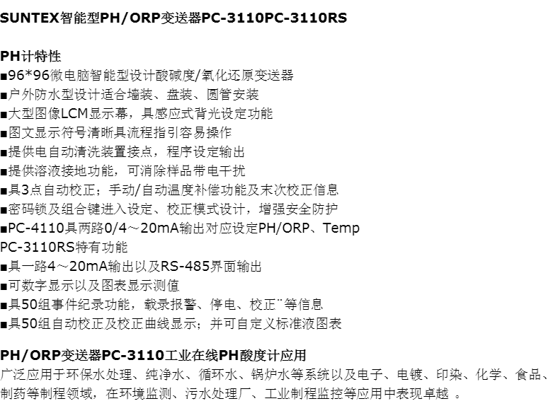 中國臺灣上泰SUNTEX PC-3110 PH計工業(yè)在線PH/ORP變送器可帶環(huán)保認(rèn)證