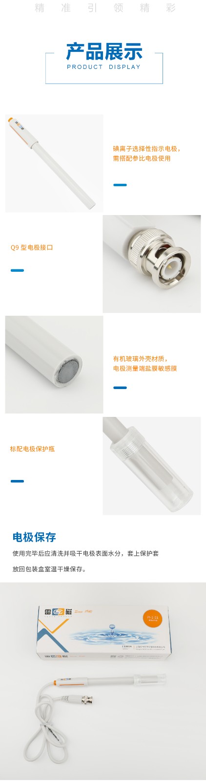 【雷磁】離子計(jì)復(fù)合電極探頭PI-1-01型碘離子電極
