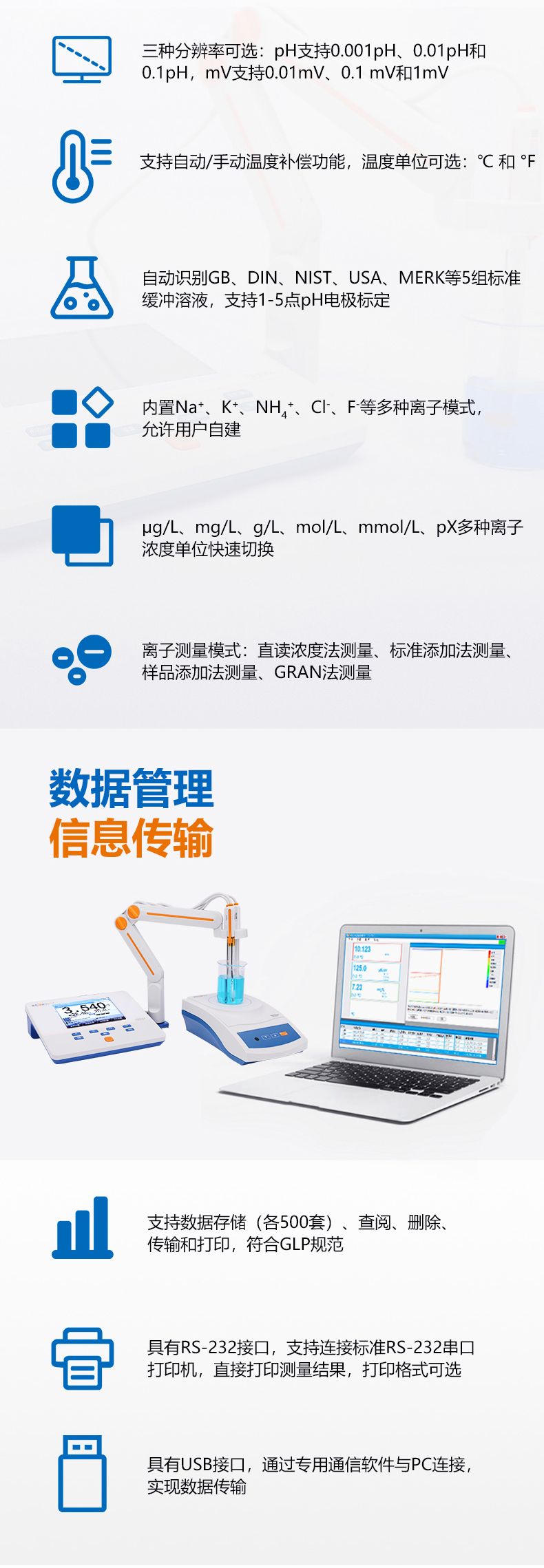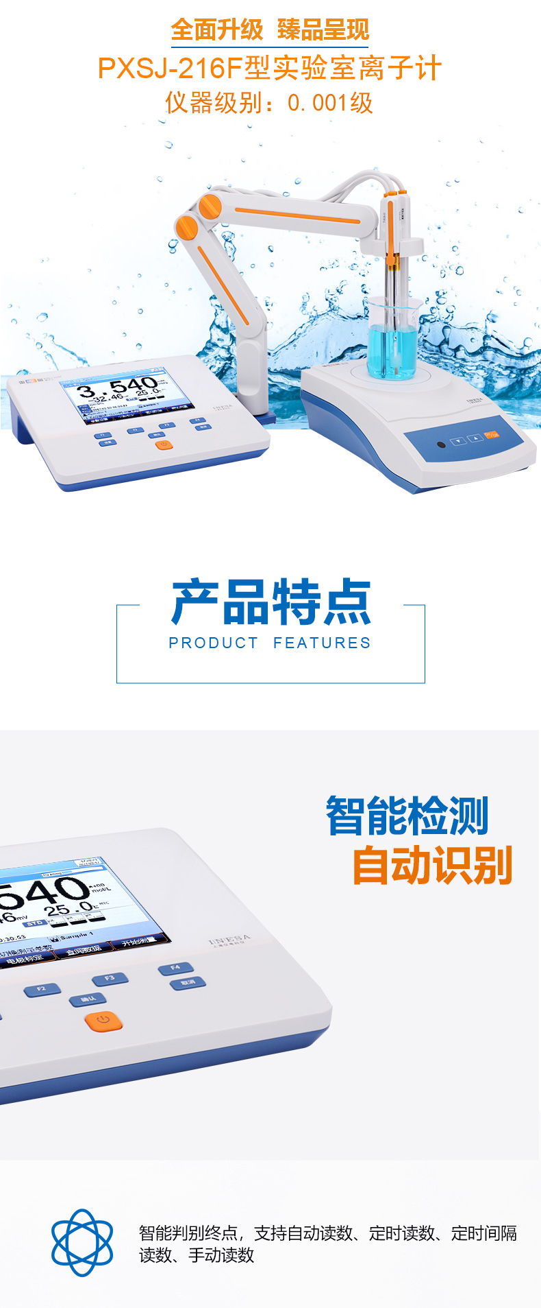 • 雷磁(leici)PXSJ-216F型離子計液晶屏幕自動手動溫度補(bǔ)償多種離子模式