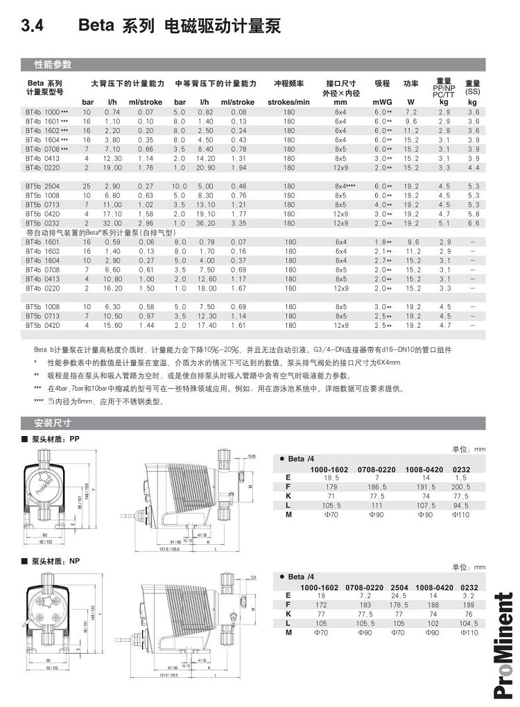 Beta b計(jì)量泵在計(jì)量高粘度介質(zhì)時(shí),計(jì)量能力會(huì)下降10-20%,并且無(wú)法自動(dòng)引液。G3/4-DN連接器帶有d16-DN10的管口組件。